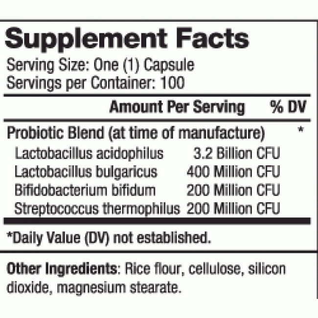 • Lactobacillus Acidophilus (80%):L. acidophilus е най-често използваната пробиотична или "приятелска" бактерия. Такива здрави бактерии обитават червата и влагалището и предпазват от навлизането и разпространението на „лоши“ организми, които могат да причинят заболяване. Това се постига чрез различни механизми. Например разграждането на храната от L. acidophilus води до производство на млечна киселина, водороден прекис и други странични продукти, които правят околната среда враждебна за нежеланите организми. L. acidophilus също произвежда лактаза, ензимът, който разгражда млечната захар (лактоза) до прости захари. Хората с непоносимост към лактоза не произвеждат този ензим. Поради тази причина добавките от L. acidophilus могат да бъдат полезни за тези индивиди.