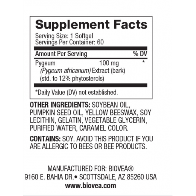 Pygeum Africanum е кората на вечнозелено дърво, произхождащо от определени региони на Африка. Обикновено кората не се събира, докато дървото не израсте напълно. Кората съдържа три групи активни съставки: фитостероли (като бета-ситостерол), пентациклични тритерпеноиди (включително урсолова и олеаинова киселини) и ферулови естери на дълговерижни мастни алкохоли (включително ферулови естери на докозанол и тетракозанол).