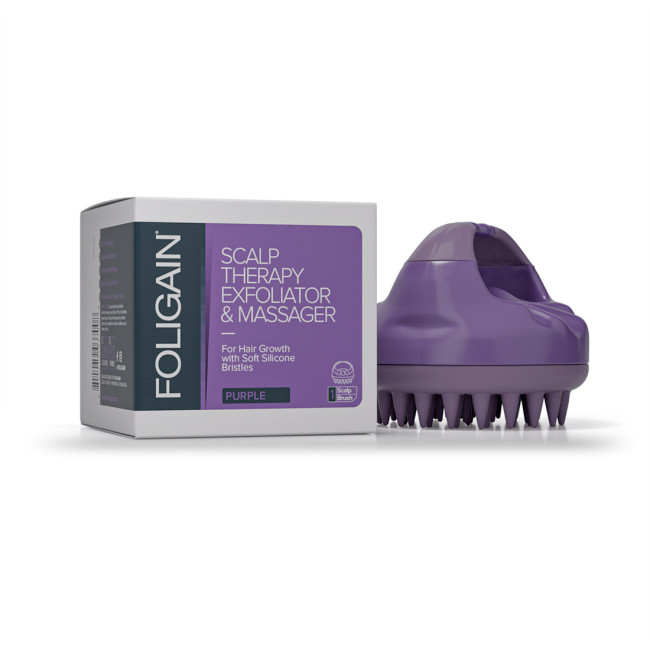 FOLIGAIN® Scalp Therapy Exfoliator & Massager е мощно допълнение към вашата рутинна грижа за косата с FOLIGAIN®, специално създадено да подпомага растежа на косата, като помага за поддържане на по-чист и здрав скалп. С меките и гъвкави силиконови връхчета този удобен инструмент нежно ексфолира скалпа, премахвайки натрупвания, излишен себум и мъртви кожни клетки—създавайки идеална среда за по-силна и по-гъста на вид коса.