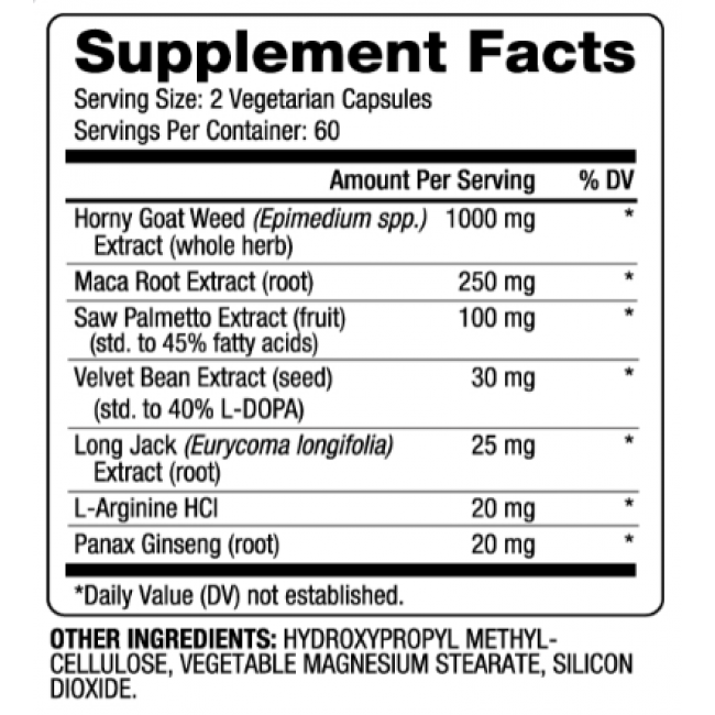 Всяка капсула съдържа уникален и мощен комплекс от билки, стимулиращ сексуалната дейност и при двата пола, изострящ сетивните нерви и увеличаващ сексуалното желание. Комбинацията с Мака прави Horny Goat Weed Plus ултиматният продукт за стимулиране собственото производство на тестостерон и увеличаване на силата и потентността.